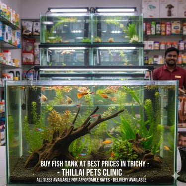 Why Choose Thillai Pets Clinic? At Thillai Pets Clinic, we're passionate about pets. Our knowledgeable staff are always on hand to provide expert advice, helping you select the right tank and guiding you through the setup and maintenance process to ensure a thriving aquatic environment.