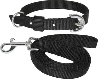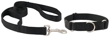 Medium Dog Belt Combo of Black Dog Collar with Dog Leash