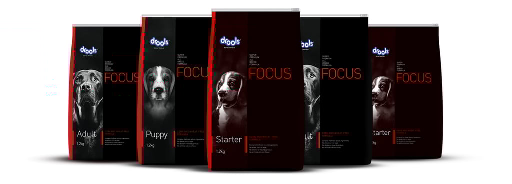 Drools Focus: A range of dry dog food formulas tailored for the unique nutritional needs of puppies and adult dogs.