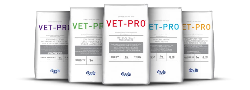 Drools Vet Pro: A specialized collection of veterinary diets designed to address specific health concerns, such as obesity, and support digestive health, joint function, and more.