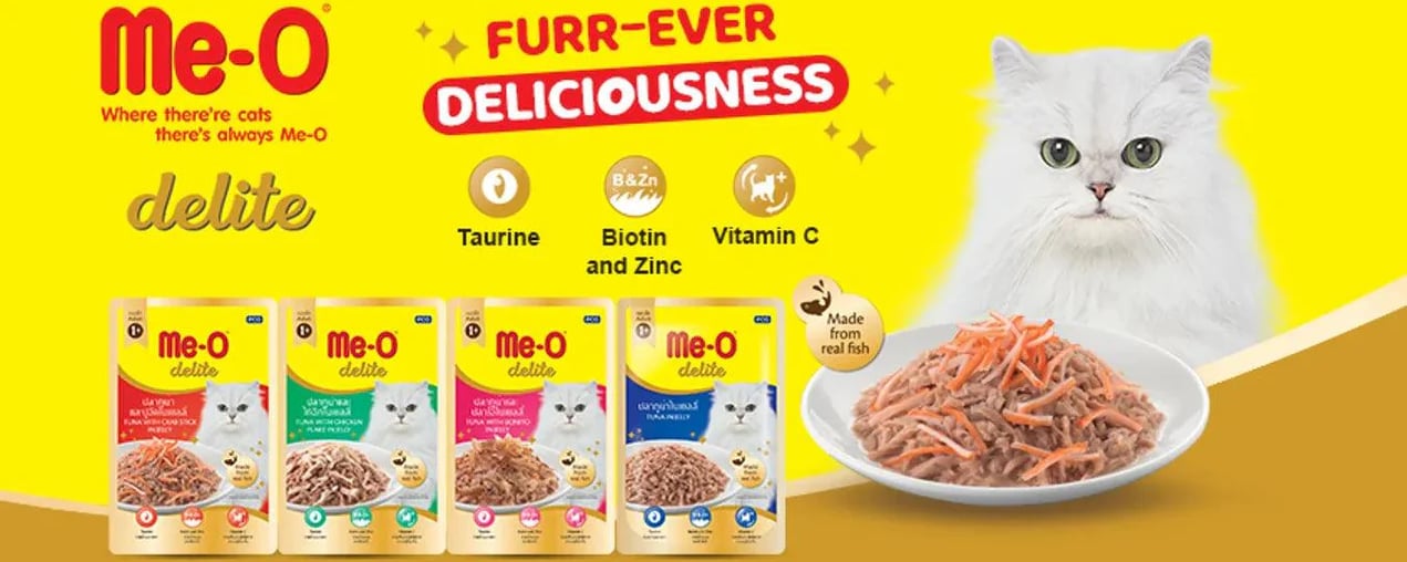 – Me‑O Adult Seafood, Me‑O Adult Salmon, Me‑O Adult Gourmet, Me‑O Adult Tuna — delicious flavors for adult cats.